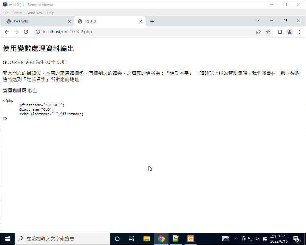 在你完成這個網頁之後,請直接右鍵查看一下原始碼,看看能不能看到剛剛寫的 PHP 程式碼呢?