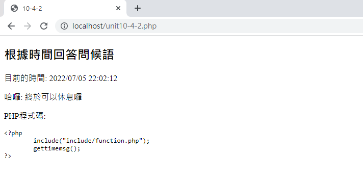雖然執行結果相同的,但是這才是比較正確的作法!透過函數去處理某些任務,或者是透過函數去取得某些變數內容, 要比直接匯入固定程式碼來的有效率喔!處理上也比較直覺~