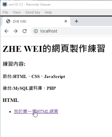 既然首頁及資料夾都已經有了,那之後做的所有網頁都要放在www的資料夾裡面,並且在首頁放上連結可以直接點了就直接跳過去。