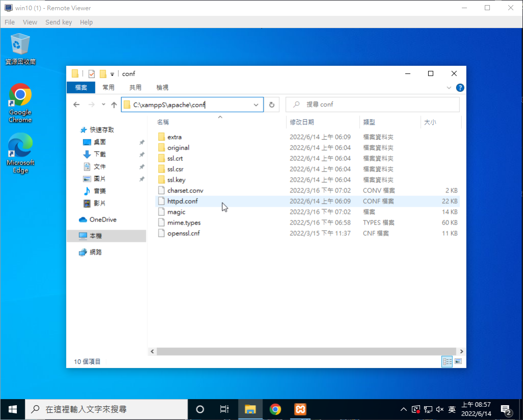 到C槽的xampp資料夾 -> 進到apache資料夾 -> 再進到 conf資料夾裡,找到httpd.conf的檔案