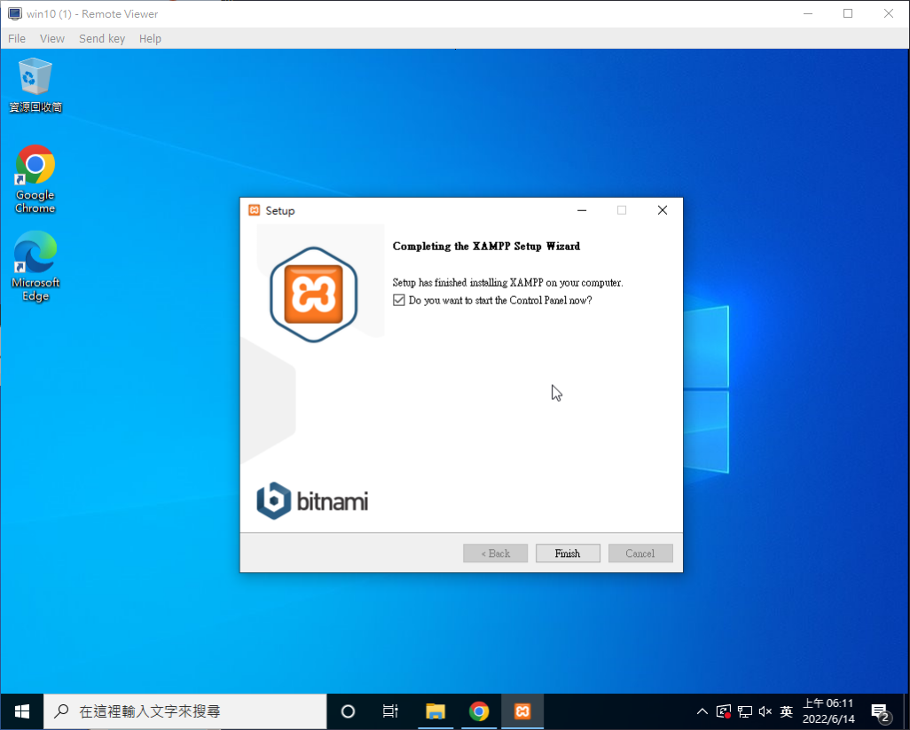 中間方框不拿掉,按下Finish後幫我開啟XAMPP控制台