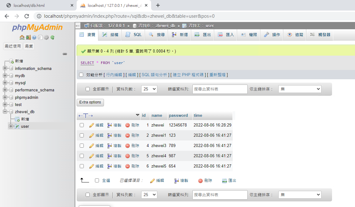 上面提到的程式,再搭配之前講過的php的程式,就可以跟資料庫連線。