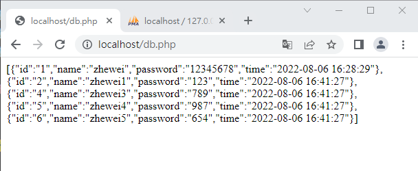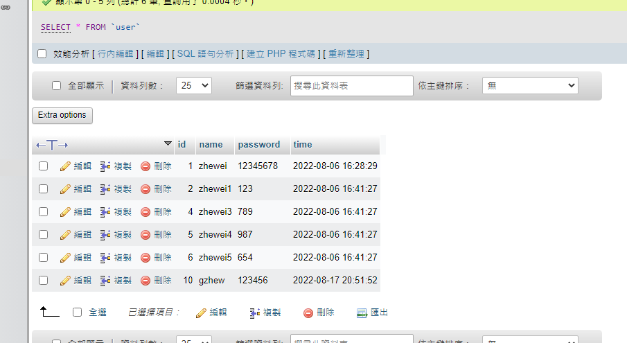 可以看到資料表內的每一筆資料都抓出來,並且欄位名稱也都會一起出現。