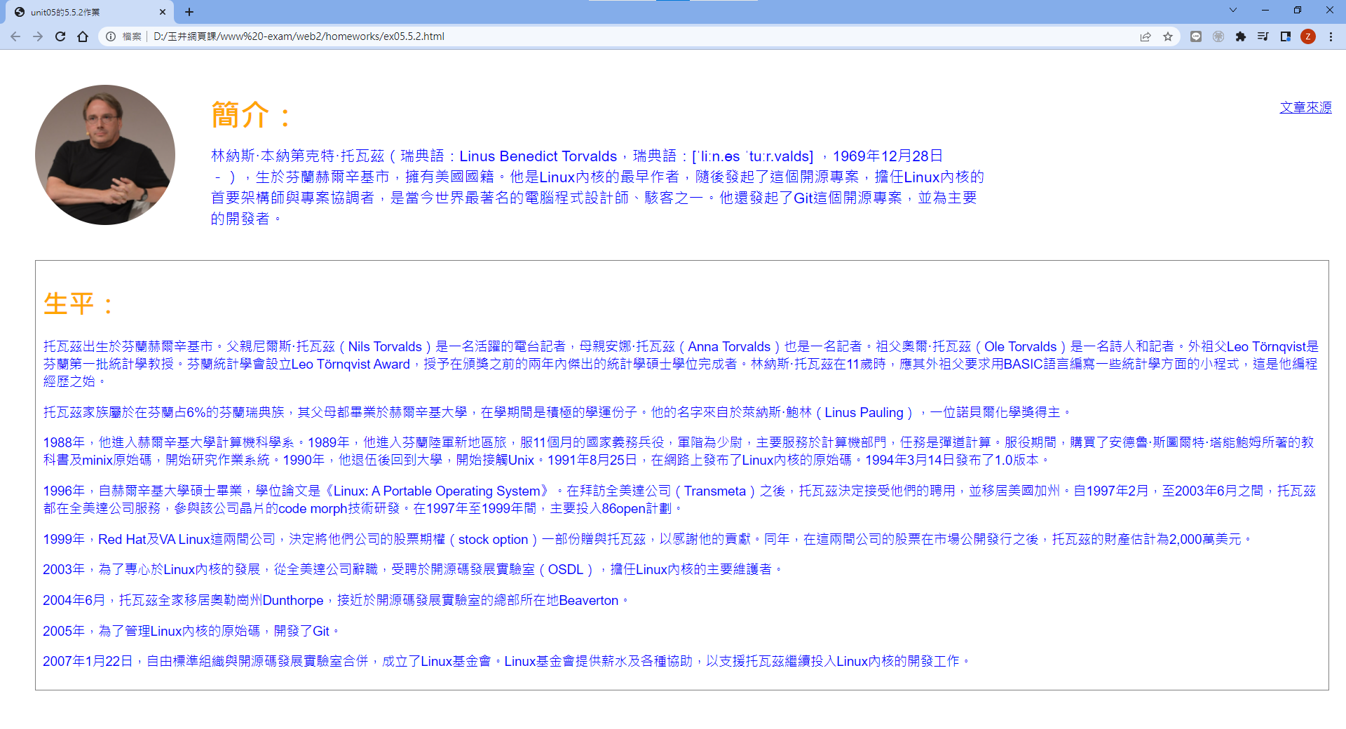 未來,只要將 .bighead 以及 .bighead img 的設定放入 overall.css 當中,那你就可以直接透過上面的方式來呼叫圓形大頭照了!當然, 後續你要加上什麼特效就自己決定囉!