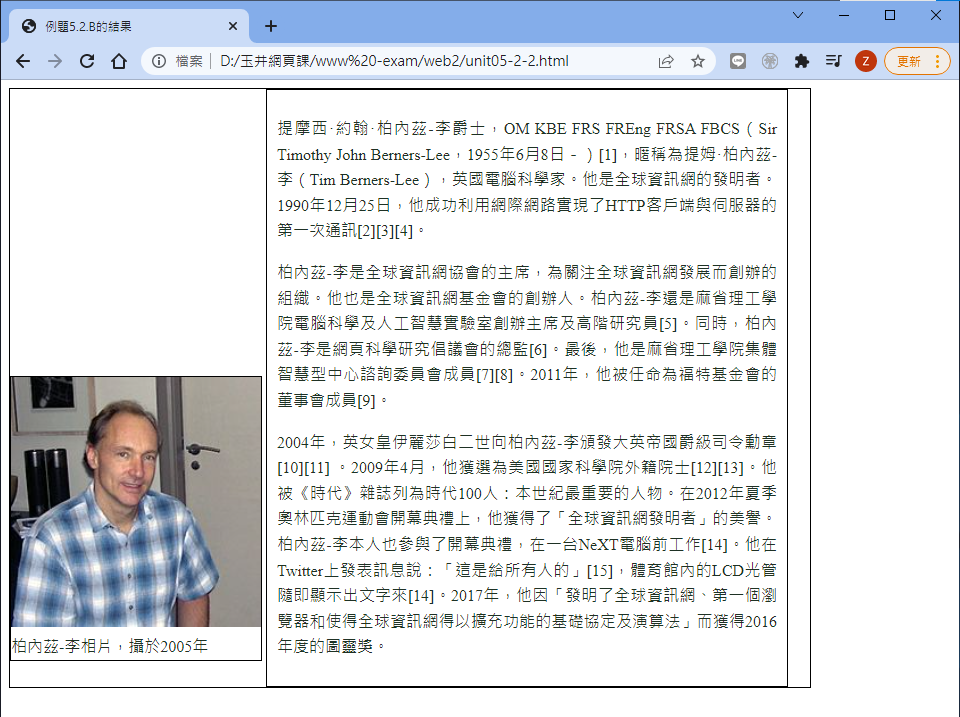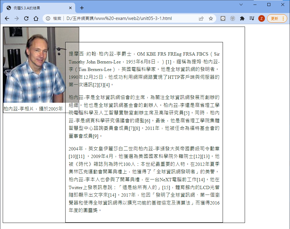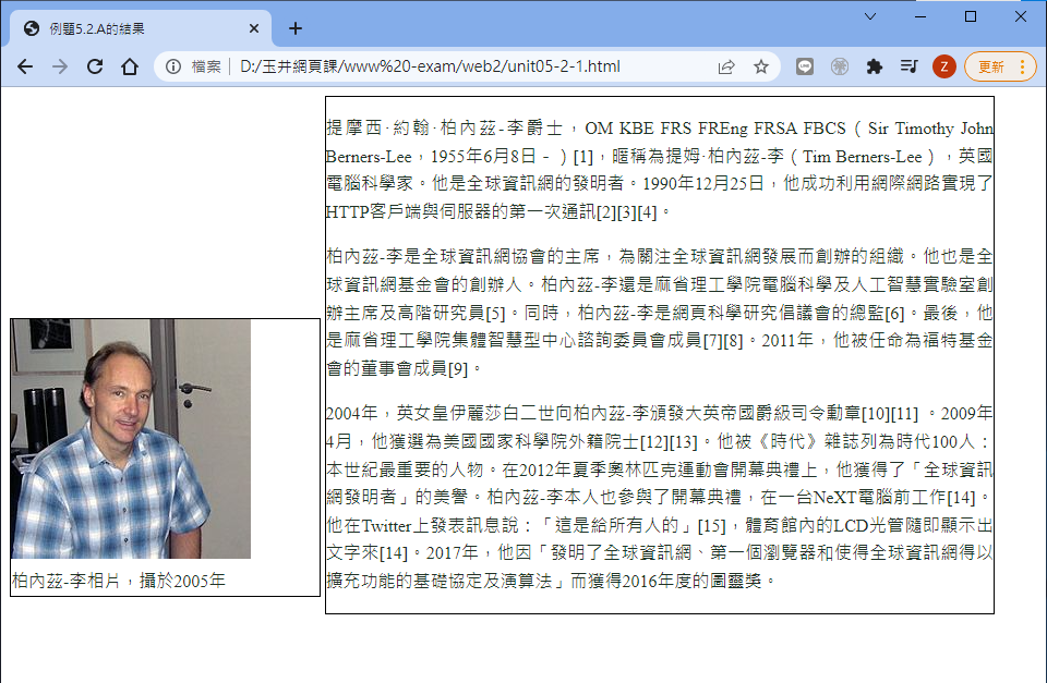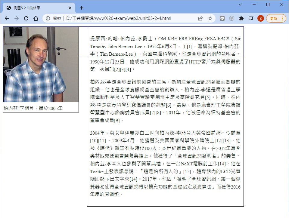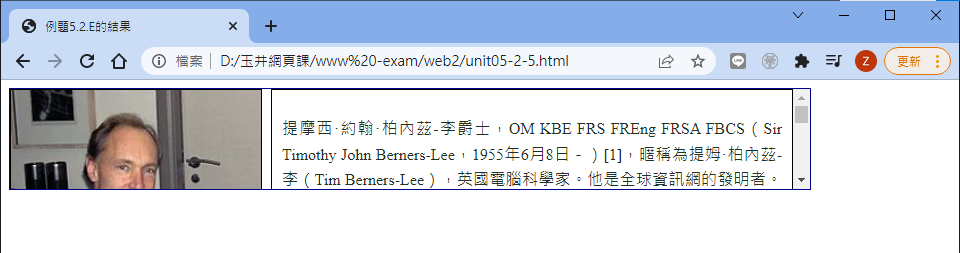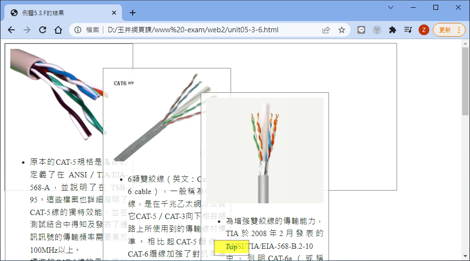 請注意,沒有 vertical-align 時,排版預設為 baseline 的排版,若是需要搭配 vertical-align 來向上對齊時,你得要注意,這個設定值是影響『被設定的方塊本身』, 與上層父元素的關係是,會讓被設定的元件對齊到父元素的最上方喔! 所以,如果 unit05-2-2.html 想要做成靠上方對齊,應該是要增加那一個設定值在哪個方塊內呢?
