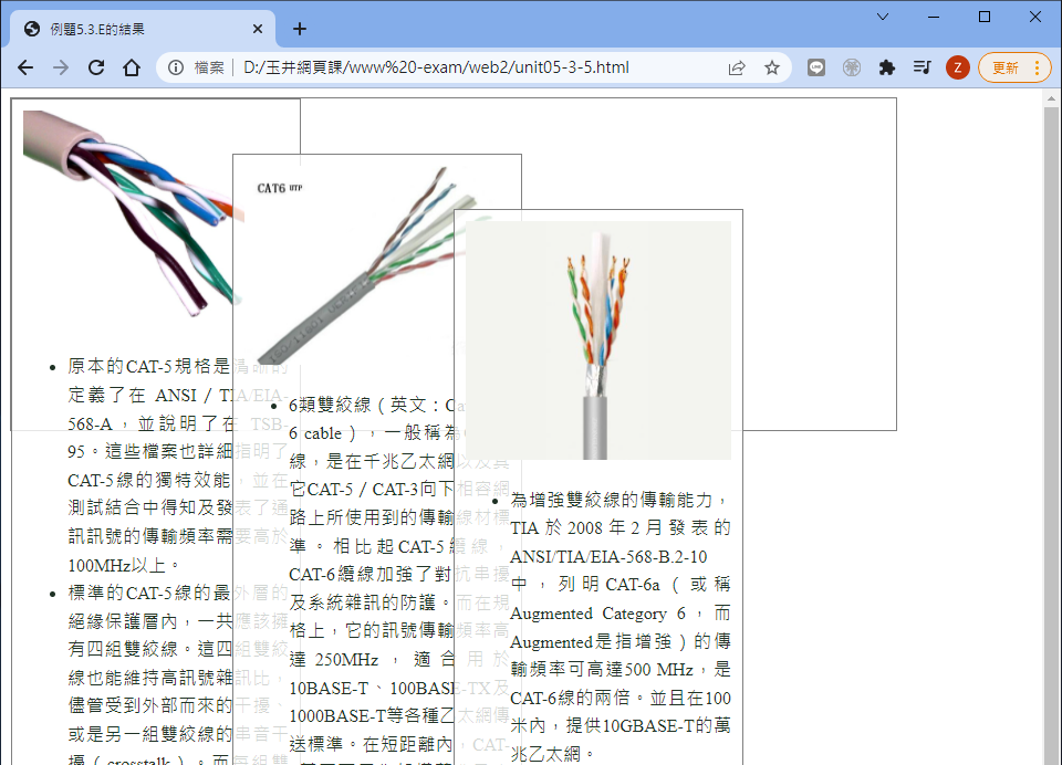 當然我們知道任何物件的原點在瀏覽器的環境下,就是左上角那一點~。讓我們來玩一玩這個位置產生的效果!同時透過底下的練習了解一下網路線等級的意義喔!