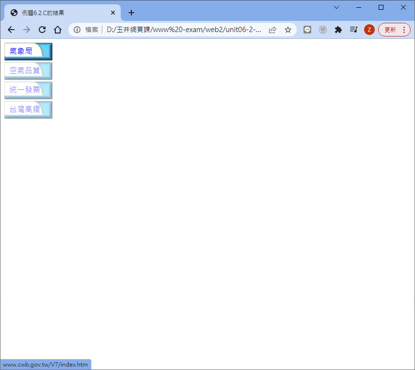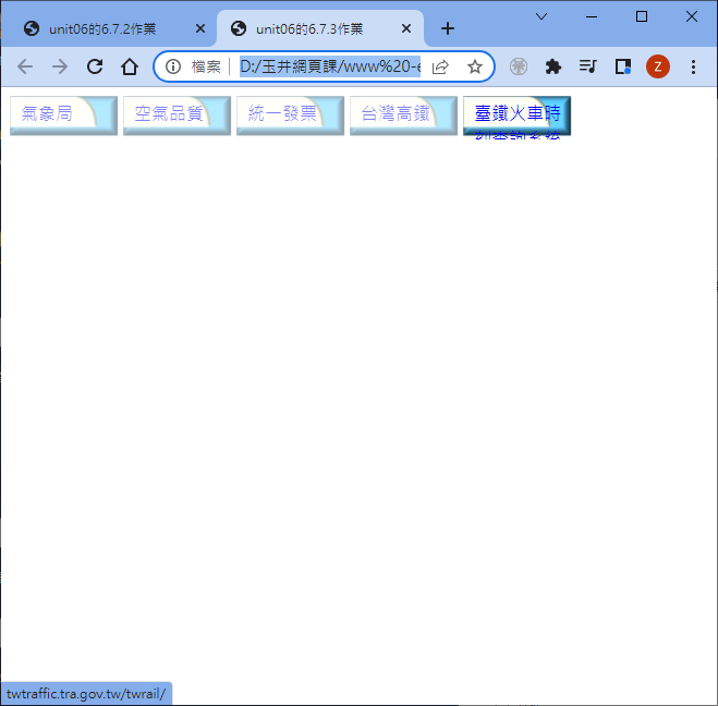 因為只用到一張圖,所以我們使用的是 opacity,如果有兩張圖,則上面最後的那個滑鼠特效,要改變的就是底圖與文字的特性囉!這樣只要一張圖即可處理全部的按鈕! 無須將所有按鈕通通圖像化!在維護上面會比較方便的!