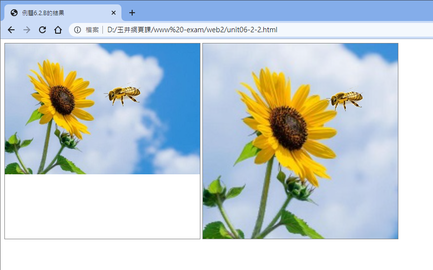 <div class="page1"> <img src="images/ex6_2_a2.png" alt="蜜蜂要停在向日葵上" /> </div> <div class="page2"> <img src="images/ex6_2_a2.png" alt="蜜蜂要停在向日葵上" /> </div>