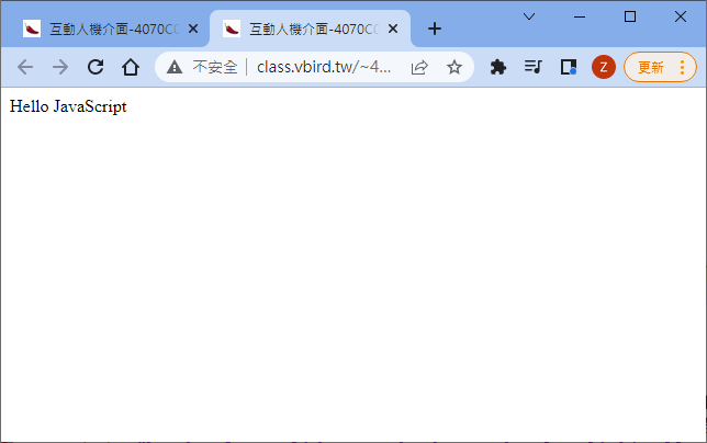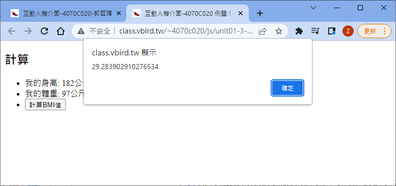 事實上,我們不是很建議使用 alert 來展示資料,因為你可以 google 翻譯一下, alert 代表警告的意思,所以, 這個彈出式視窗,代表警告!當然就不是很好。那怎辦?我們可以改用網頁改寫的 document.write 來處理。