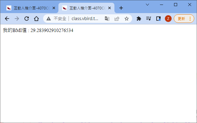 你要知道,第一行展示的結果,其實是程式碼的輸出,不是純文字的展示喔!例如,我們使用底下的方式來撰寫一個計算的 BMI 的程式: