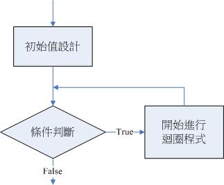 某些時刻我們需要『重複』進行某件事情,如果你重複兩三次程式碼,可能還覺得沒什麼了不起,但是,如果你需要的是幾十次、幾百次重複的程式碼,並且需要 (1)指定固定的次數或者是 (2)需要某個情境下才結束(或開始)某個持續不斷的程式碼,這個時候,你不能使用撰寫多次程式碼的方式, 而是需要透過『使用迴圈來執行某些個特定的程式碼』,這樣的想法才合理。例如底下的流程: